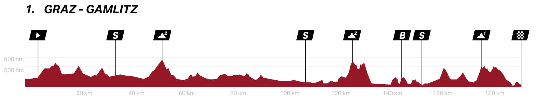 1. Etappe, 8.7.: Graz – Gamlitz (188 km / 2.716 hm)