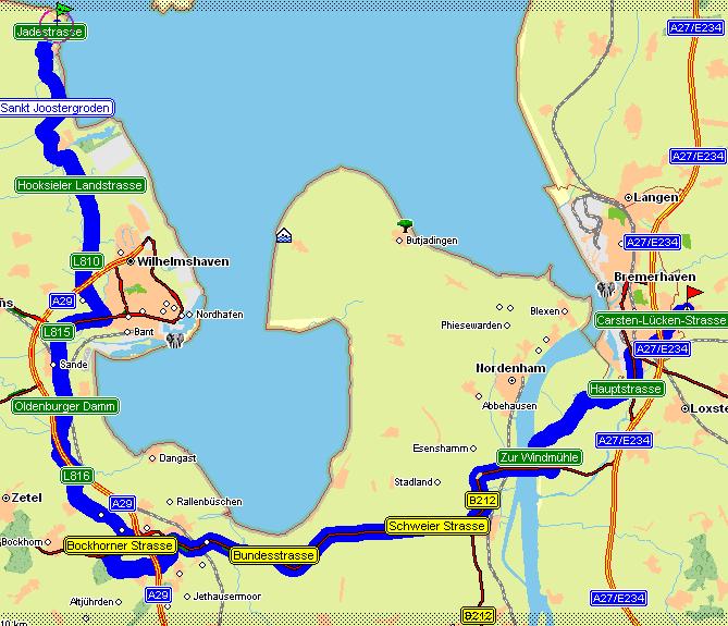 ich will von schillig nach schiffdorf (bei bremerhaven). die einzige karte die ich hab, hört bei varel auf. es gibt eine interaktive niedersachsenkarte, allerdings ist bei der benötigten auflösung nicht mehr soo viel zu erkennen. wichtig wäre vor allem die gesamtentfernung. nicht, dass ich mich am ende auf eine 120km-tour einlasse... oder, das wäre schon okay, nur dann müsste ich das vorher wissen. großes Grinsen